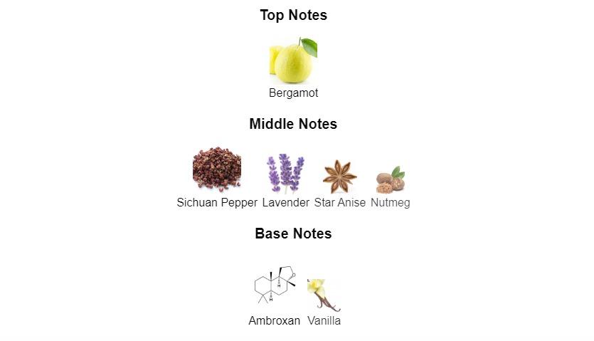 Heart Notes: Sichuan Pepper,  Lavender,  Star Anise, Nutmeg