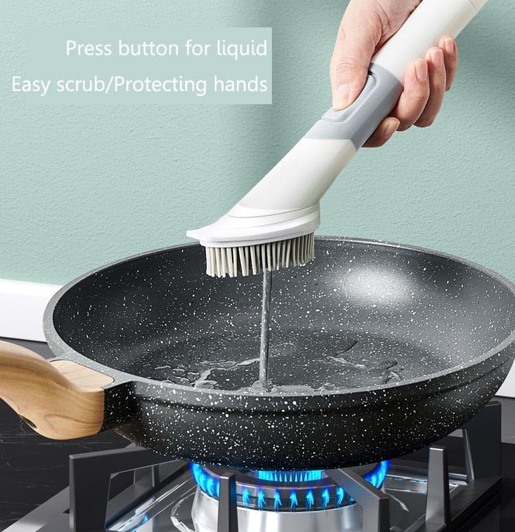 - Why Choose This Dish Brush? Save time and effort with this innovative cleaning tool that combines scrubbing power with soap-dispensing convenience. Whether you’re washing greasy pans or delicate glassware, this brush makes kitchen cleanup fast and hassle-free